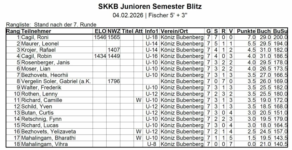 Junioren Blitzturnier vom 4. Feb. 2026