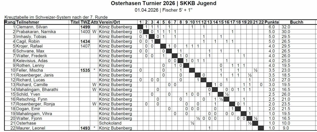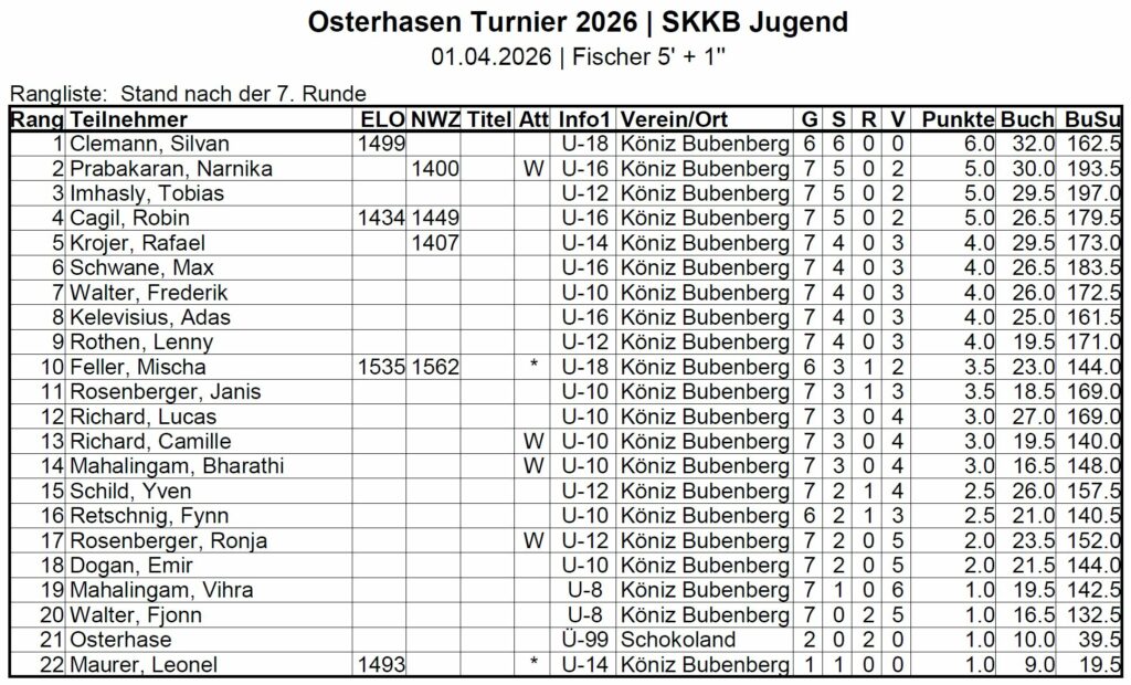 Rangliste: Stand nach der 7. Runde